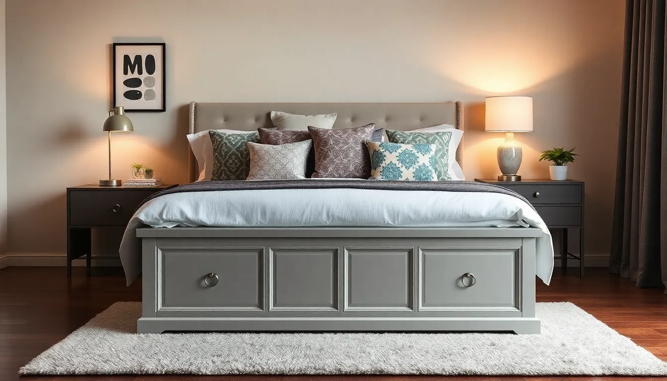 Storage benches optimize space while keeping the bedroom organized. These functional pieces often feature compartments or drawers, providing room for blankets, shoes, or seasonal clothing. Many styles range from sleek modern designs to ornate vintage options, accommodating different tastes. Utilizing a storage bench at the foot of the bed can declutter the room, offering both practicality and style.