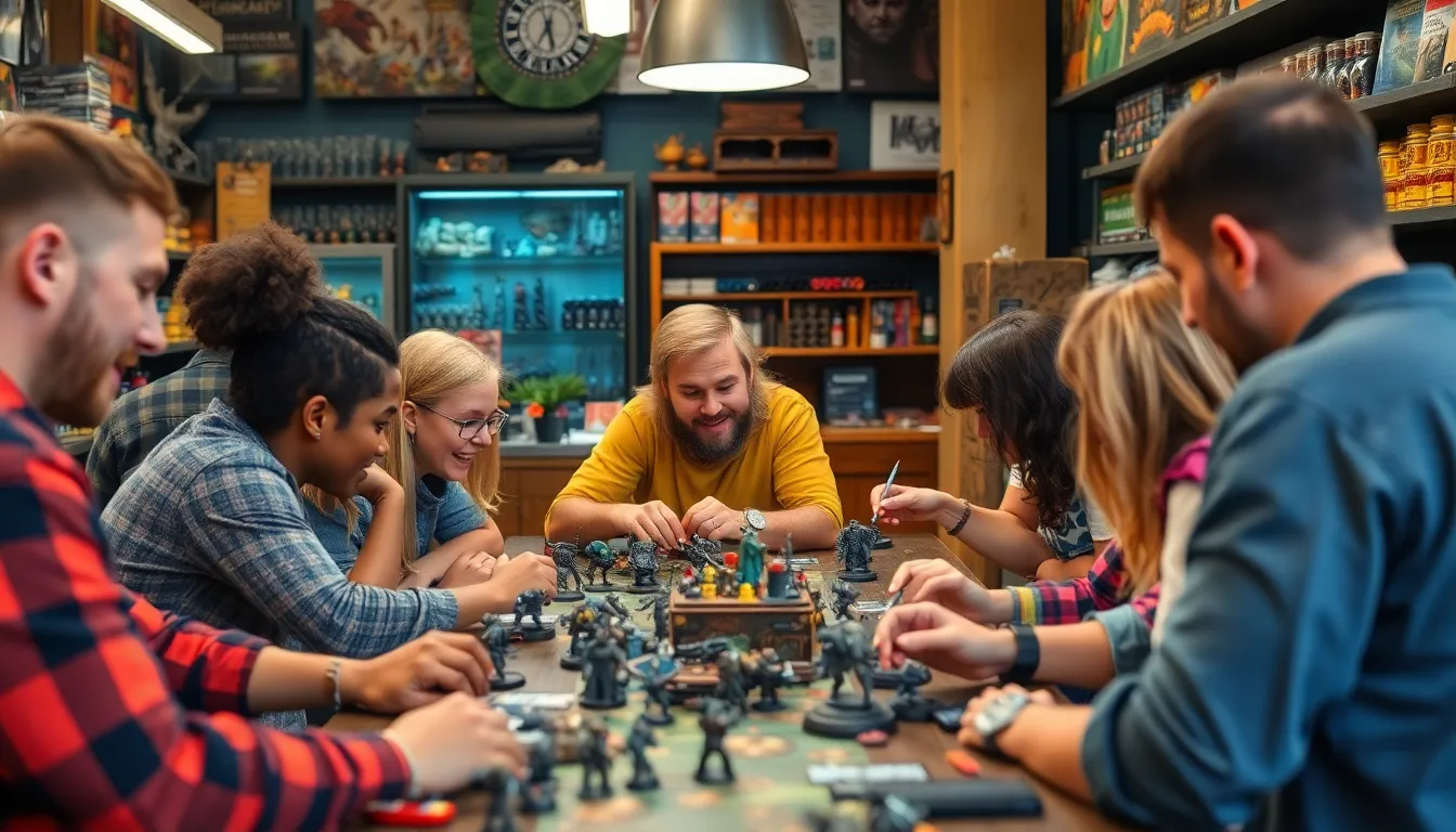 The store’s energetic vibe captivates visitors. Miniature displays showcase detailed collections, inspiring creativity among gamers. Comfortable seating areas encourage players to gather and strategize together. Natural lighting fills the space, creating an approachable environment for newcomers. Every corner of the shop reflects the passion for tabletop gaming, from painted miniatures to painted walls. Customer interactions along with game tables foster friendly competition and collaboration. Events held within the store contribute to the lively atmosphere, encouraging participation from gamers of various skill levels.